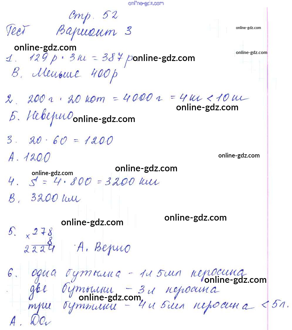 Готовые домашние задания по Математике за 3 класс Тесты и самостоятельные работы для текущего контроля Нефедова Планета знаний 2017 - Страницы 52