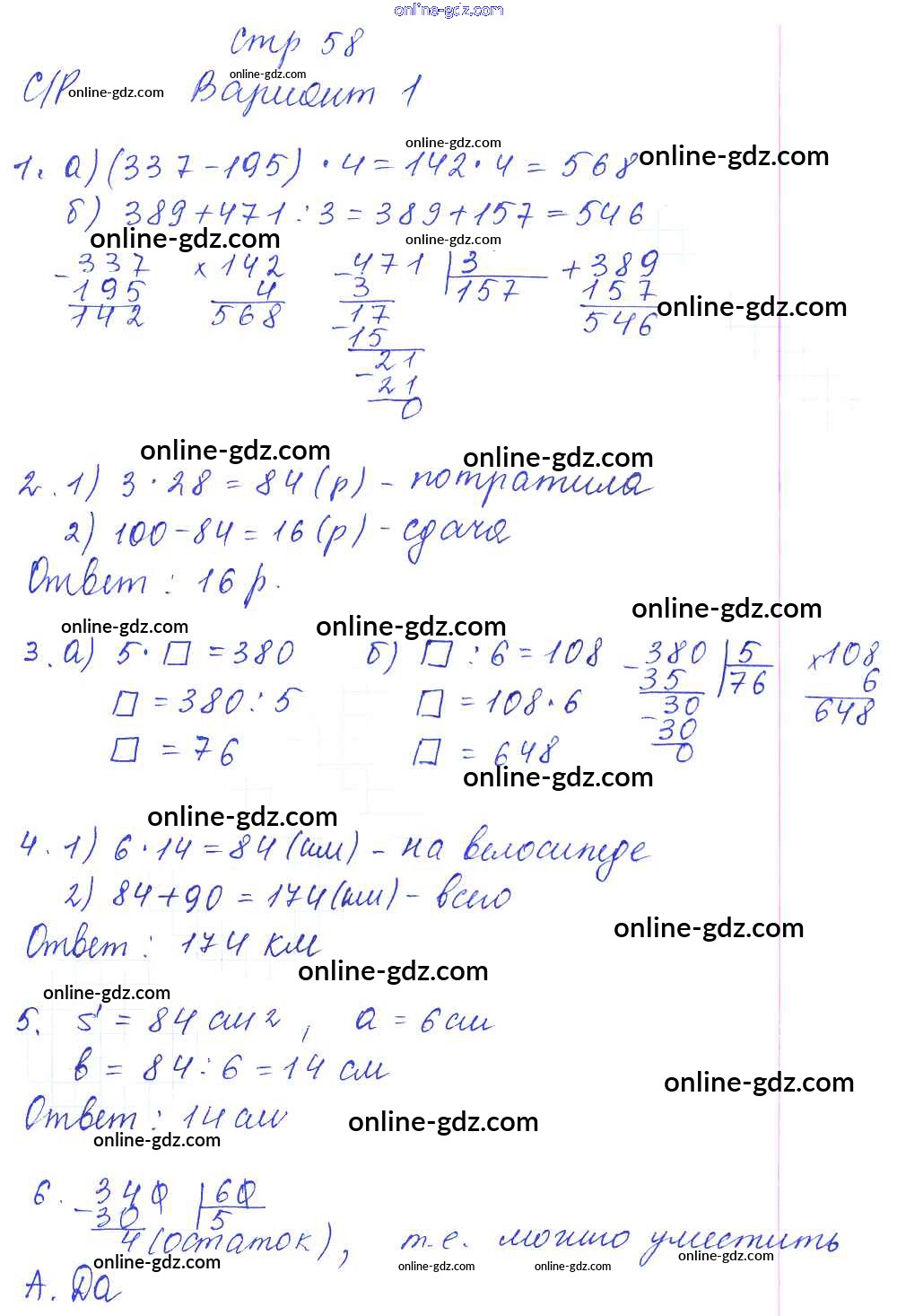 Готовые домашние задания по Математике за 3 класс Тесты и самостоятельные работы для текущего контроля Нефедова Планета знаний 2017 - Страницы 58