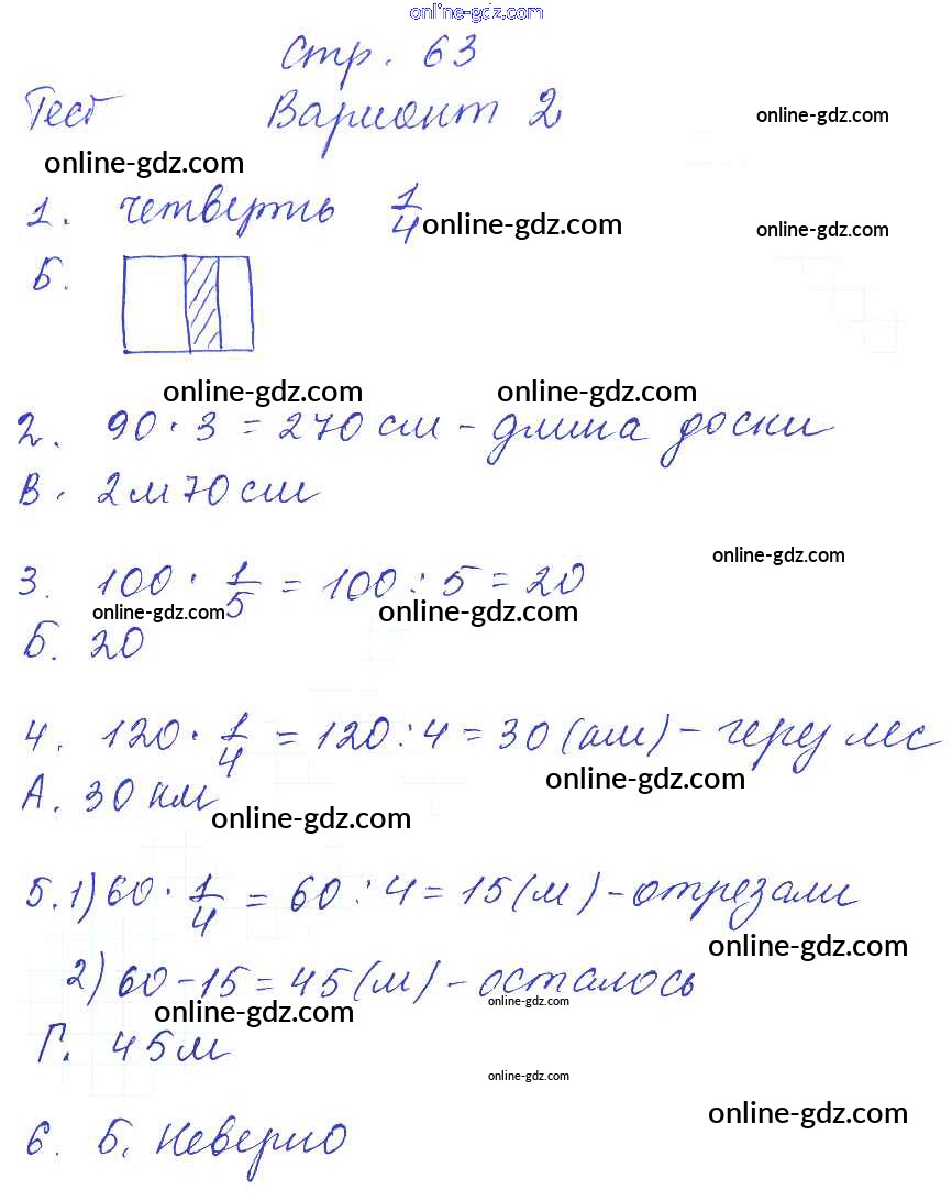 Готовые домашние задания по Математике за 3 класс Тесты и самостоятельные работы для текущего контроля Нефедова Планета знаний 2017 - Страницы 63