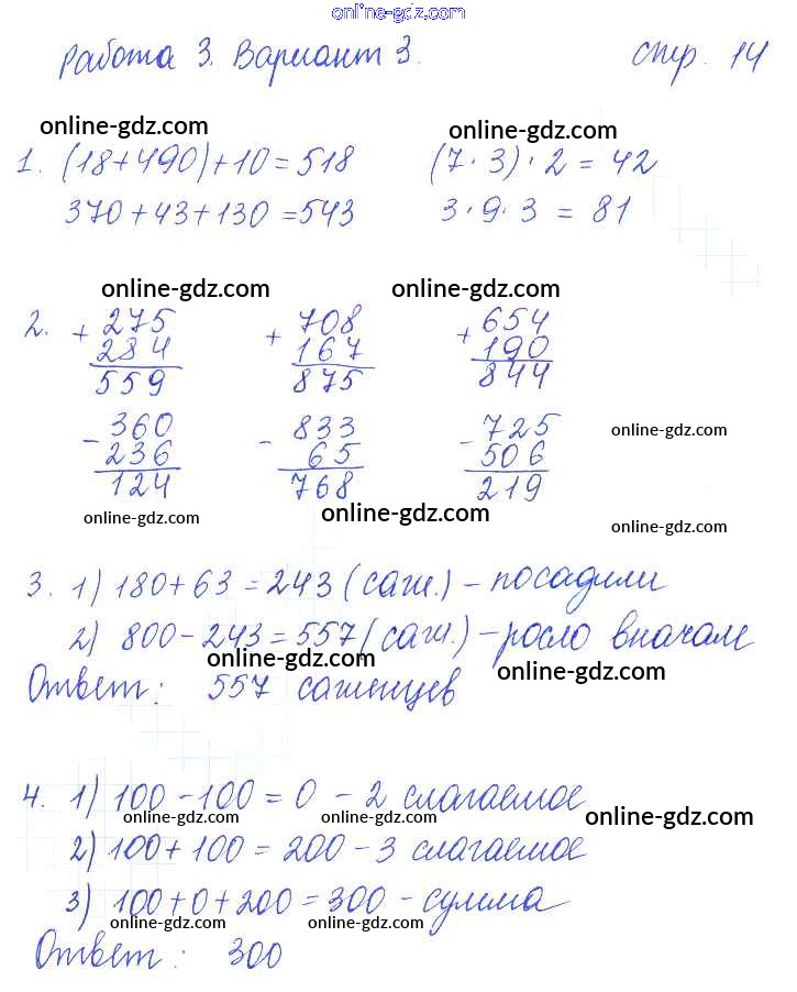 Готовые домашние задания по Математике за 3 класс Тетрадь для контрольных работ Рудницкая, Юдачева Начальная школа XXI века 2017 - Страницы 14