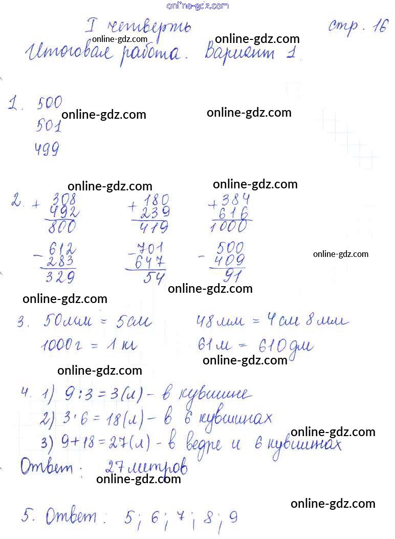 Готовые домашние задания по Математике за 3 класс Тетрадь для контрольных работ Рудницкая, Юдачева Начальная школа XXI века 2017 - Страницы 16