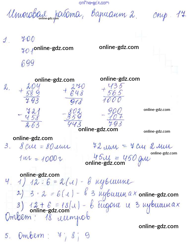 Готовые домашние задания по Математике за 3 класс Тетрадь для контрольных работ Рудницкая, Юдачева Начальная школа XXI века 2017 - Страницы 17