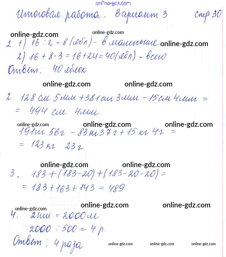 Готовые домашние задания по Математике за 3 класс Тетрадь для контрольных работ Рудницкая, Юдачева Начальная школа XXI века 2017 - Страницы 30