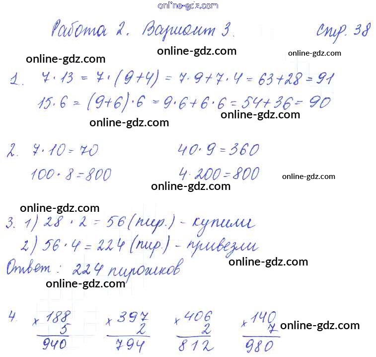 Готовые домашние задания по Математике за 3 класс Тетрадь для контрольных работ Рудницкая, Юдачева Начальная школа XXI века 2017 - Страницы 38