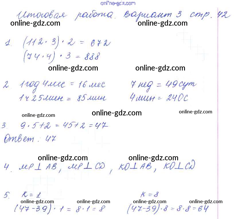 Готовые домашние задания по Математике за 3 класс Тетрадь для контрольных работ Рудницкая, Юдачева Начальная школа XXI века 2017 - Страницы 42
