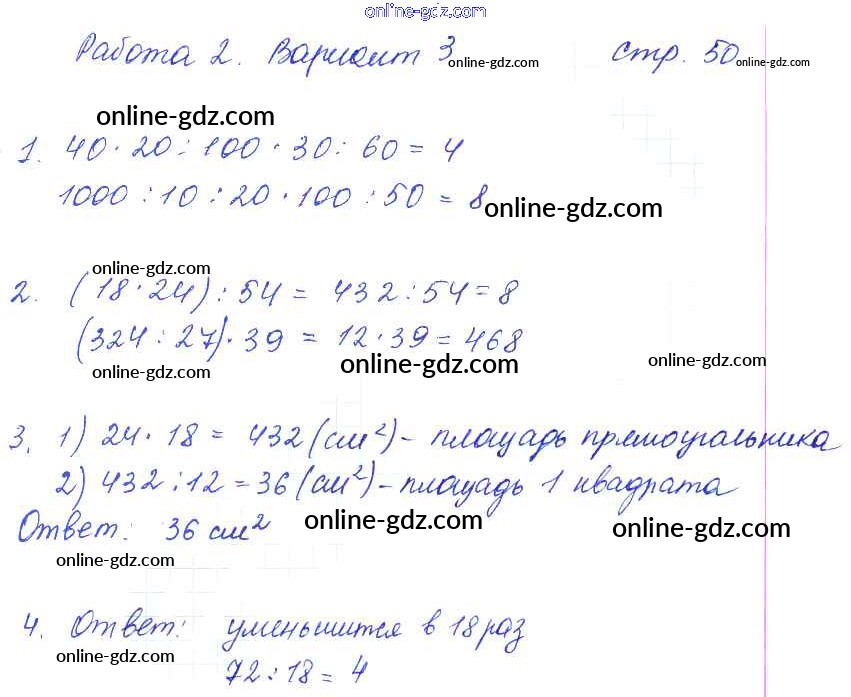 Готовые домашние задания по Математике за 3 класс Тетрадь для контрольных работ Рудницкая, Юдачева Начальная школа XXI века 2017 - Страницы 50