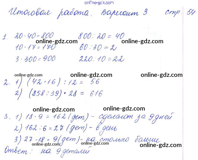 Готовые домашние задания по Математике за 3 класс Тетрадь для контрольных работ Рудницкая, Юдачева Начальная школа XXI века 2017 - Страницы 54