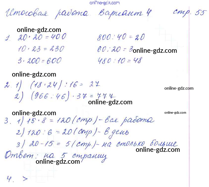 Готовые домашние задания по Математике за 3 класс Тетрадь для контрольных работ Рудницкая, Юдачева Начальная школа XXI века 2017 - Страницы 55