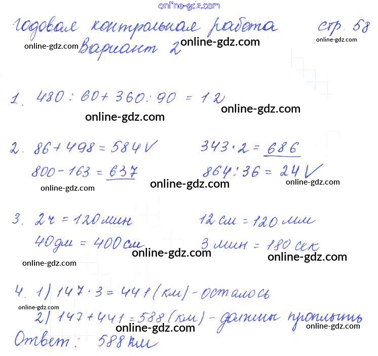Готовые домашние задания по Математике за 3 класс Тетрадь для контрольных работ Рудницкая, Юдачева Начальная школа XXI века 2017 - Страницы 58