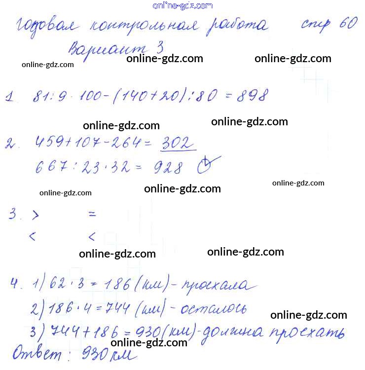 Готовые домашние задания по Математике за 3 класс Тетрадь для контрольных работ Рудницкая, Юдачева Начальная школа XXI века 2017 - Страницы 60