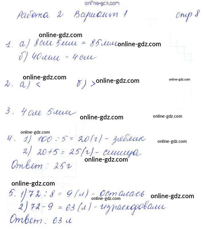 Готовые домашние задания по Математике за 3 класс Тетрадь для контрольных работ Рудницкая, Юдачева Начальная школа XXI века 2017 - Страницы 8