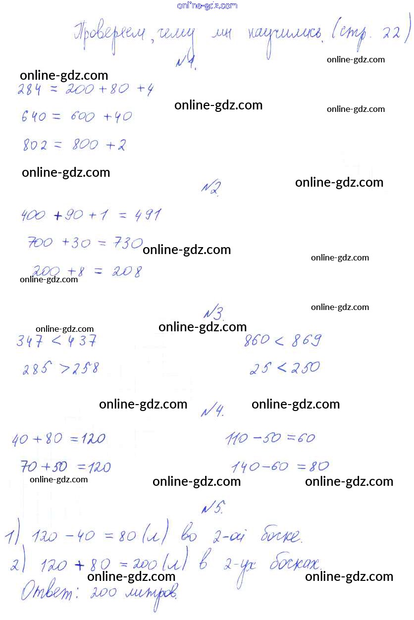 Готовые домашние задания по Математике за 3 класс Учебник Башмаков, Нефедова Планета знаний 2013 - Проверяем чему научились Часть 1 стр. 22
