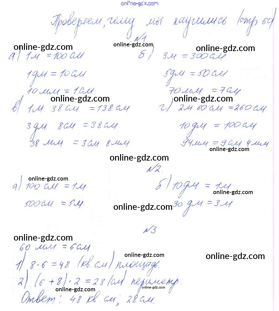 Готовые домашние задания по Математике за 3 класс Учебник Башмаков, Нефедова Планета знаний 2013 - Проверяем чему научились Часть 1 стр. 60