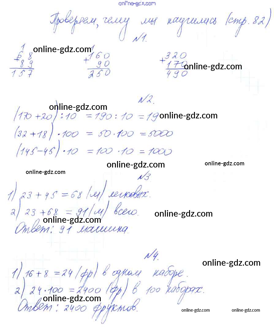 Готовые домашние задания по Математике за 3 класс Учебник Башмаков, Нефедова Планета знаний 2013 - Проверяем чему научились Часть 1 стр. 82