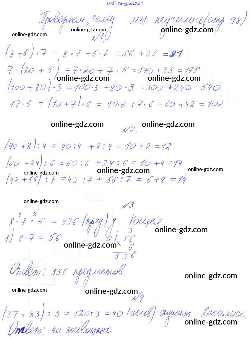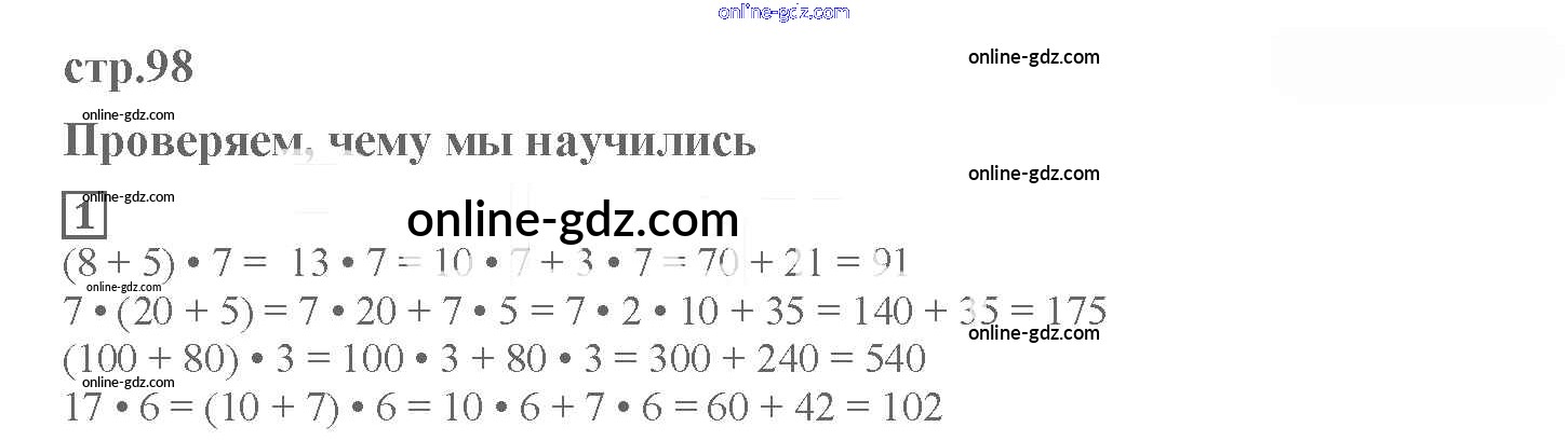 Готовые домашние задания по Математике за 3 класс Учебник Башмаков, Нефедова Планета знаний 2013 - Проверяем чему научились Часть 1 стр. 98