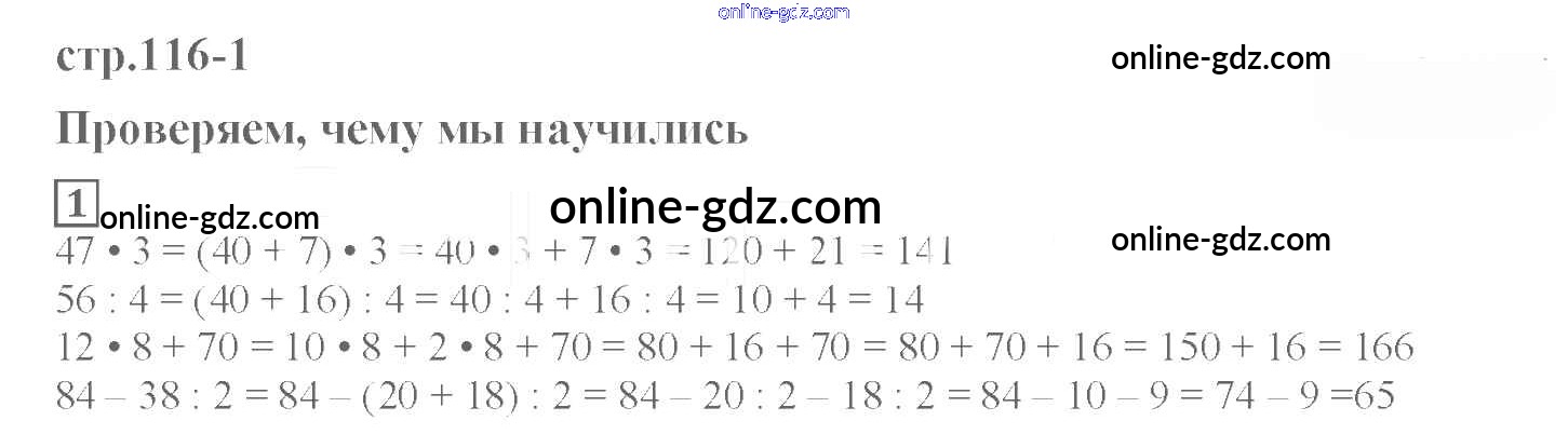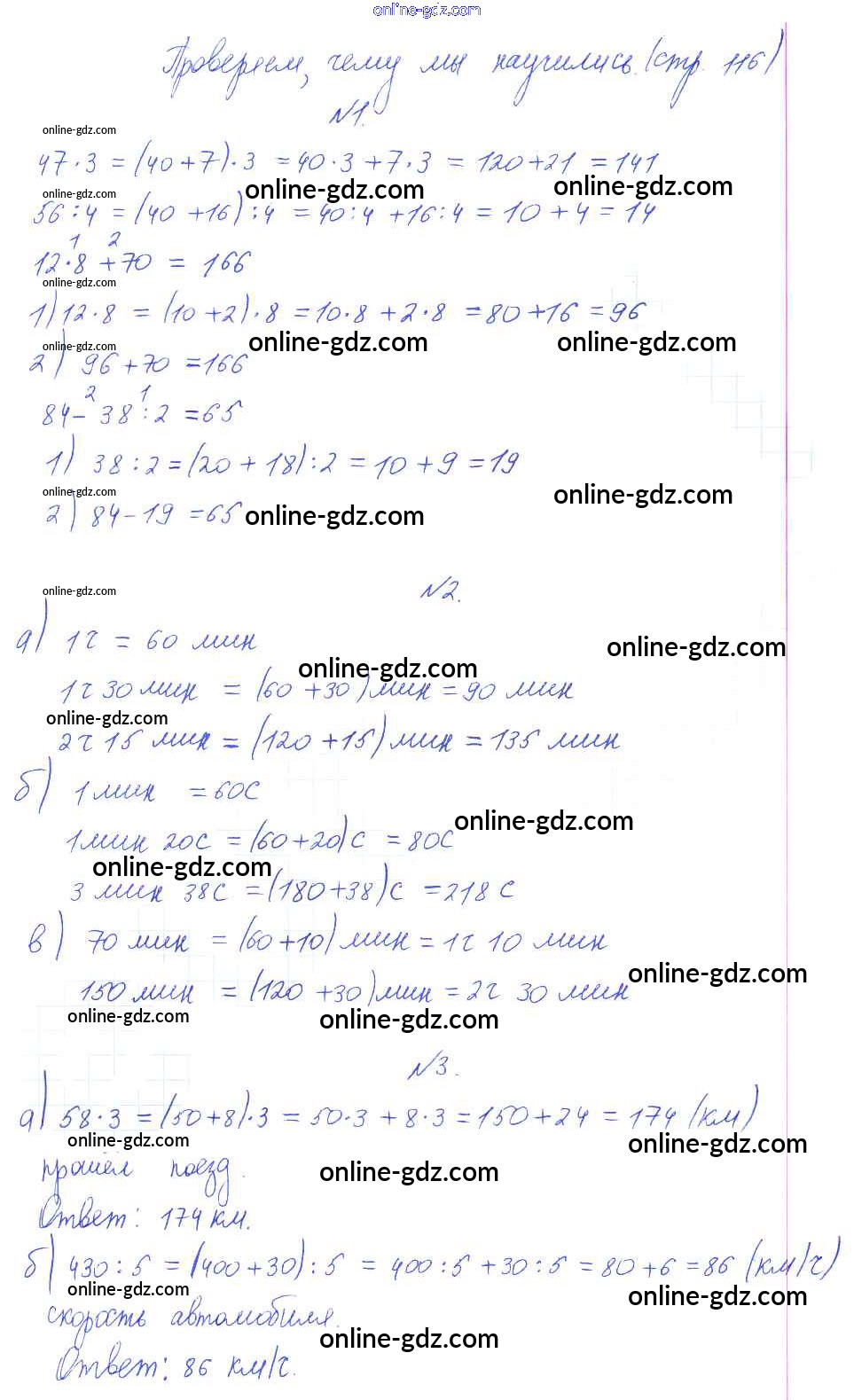 Готовые домашние задания по Математике за 3 класс Учебник Башмаков, Нефедова Планета знаний 2013 - Проверяем чему научились Часть 1 стр. 116