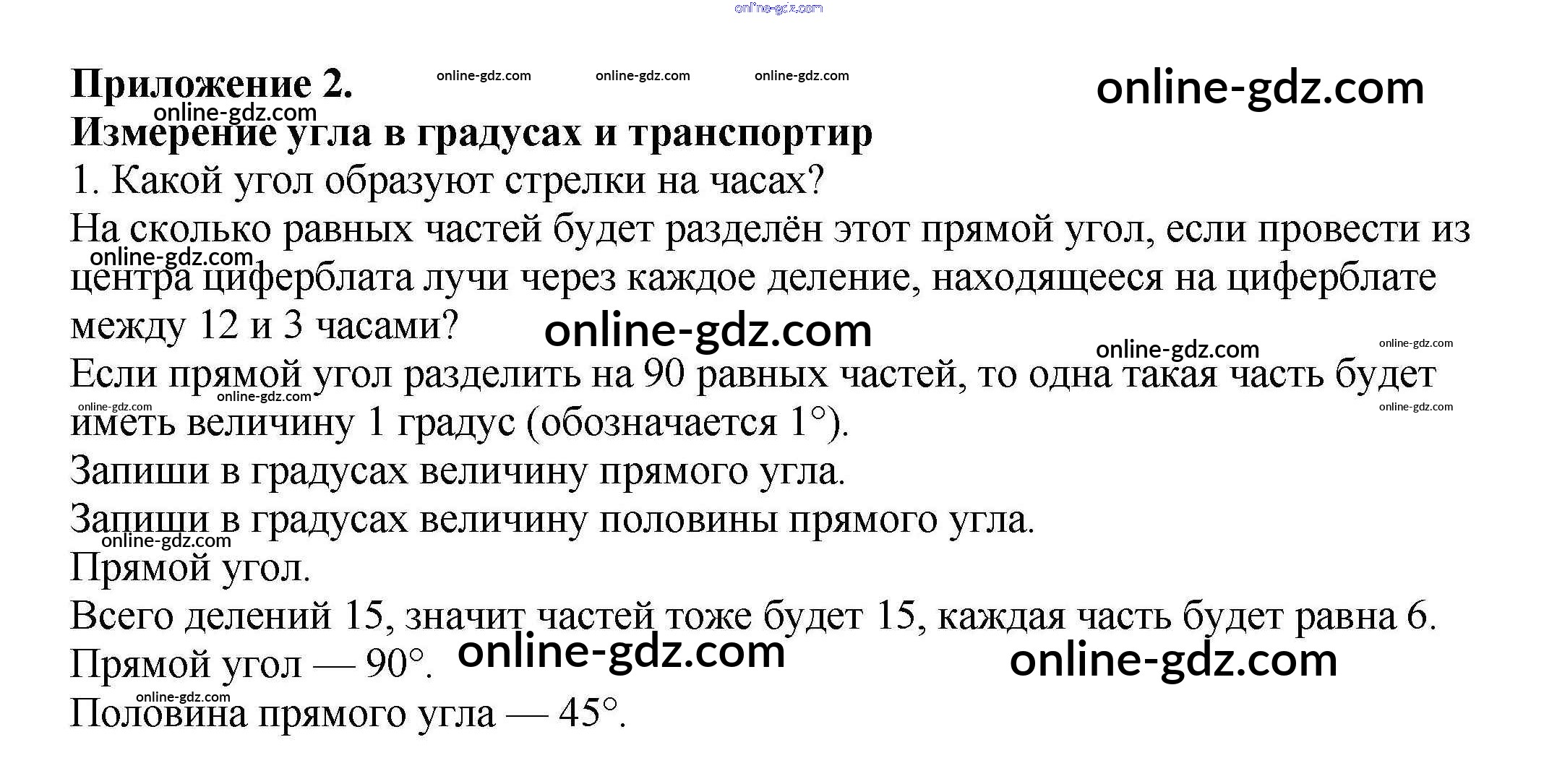 Готовые домашние задания по Математике за 3 класс Учебник Чекин Перспективная начальная школа 2016 - Приложение 2. Измерение угла в градусах и транспортир Часть 1 (упражнения) 1