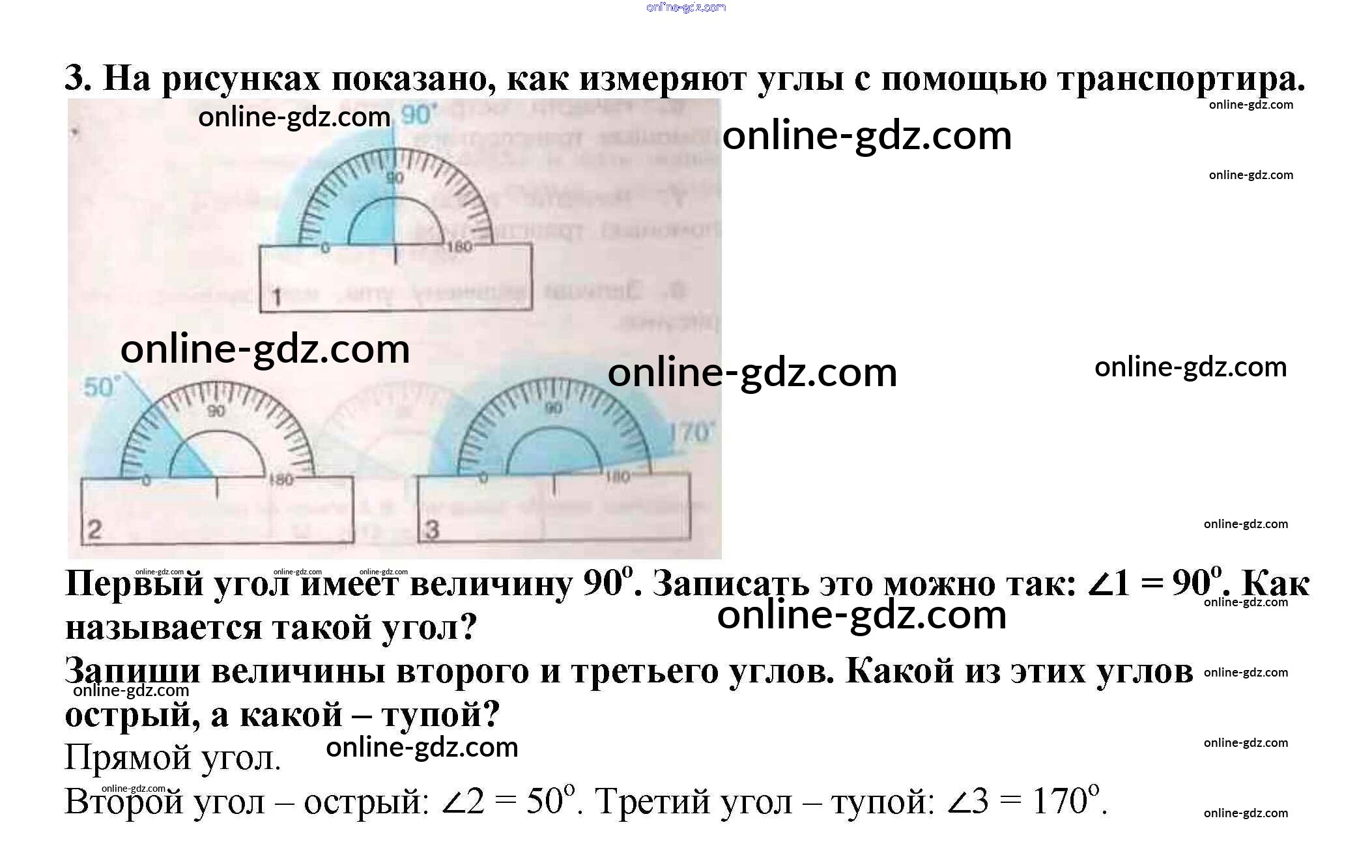Готовые домашние задания по Математике за 3 класс Учебник Чекин Перспективная начальная школа 2016 - Приложение 2. Измерение угла в градусах и транспортир Часть 1 (упражнения) 3