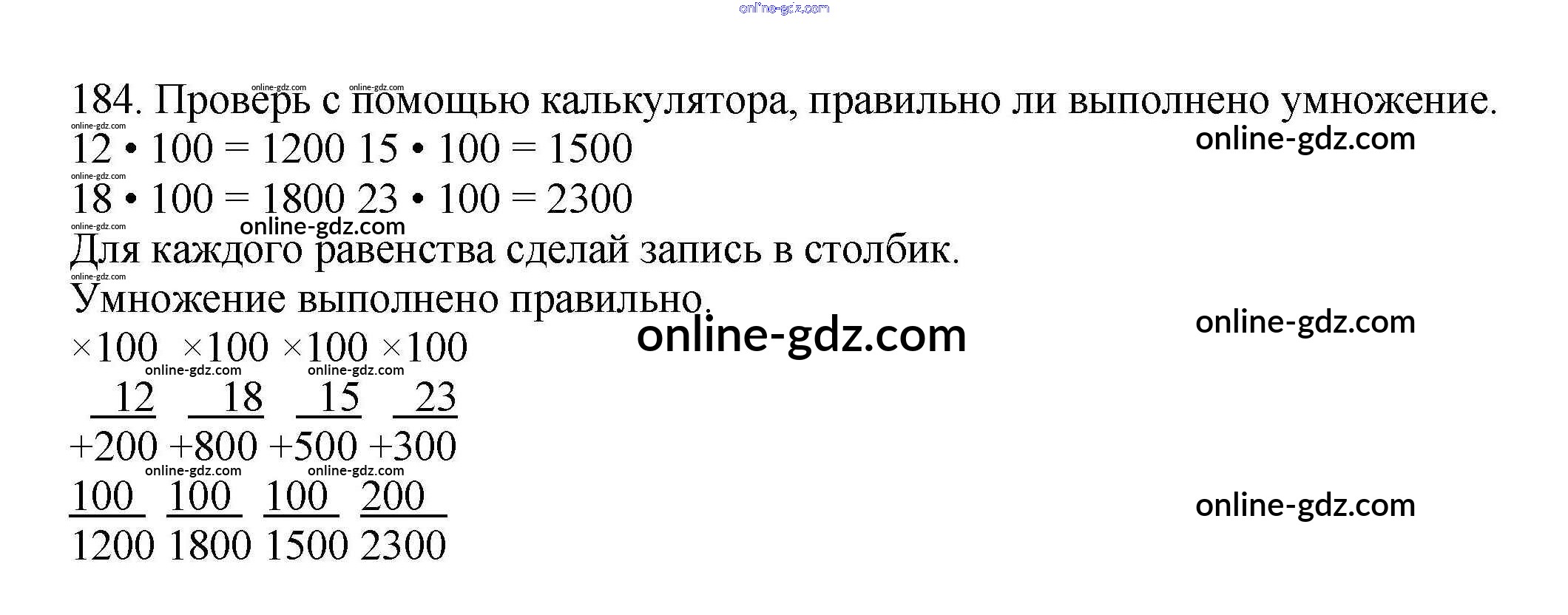 Готовые домашние задания по Математике за 3 класс Учебник Чекин Перспективная начальная школа 2016 - Часть 2 (упражнения) 184