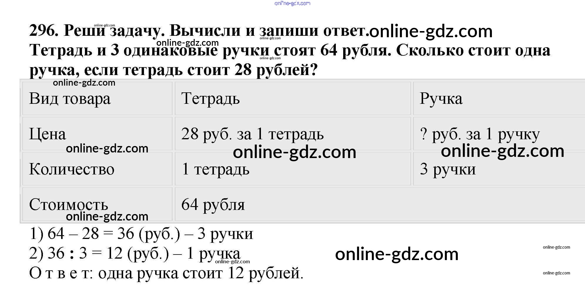 Готовые домашние задания по Математике за 3 класс Учебник Чекин Перспективная начальная школа 2016 - Часть 2 (упражнения) 296