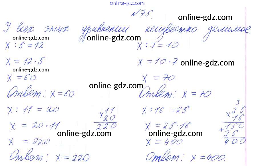 Готовые домашние задания по Математике за 3 класс Учебник Чекин Перспективная начальная школа 2016 - Часть 2 (упражнения) 75