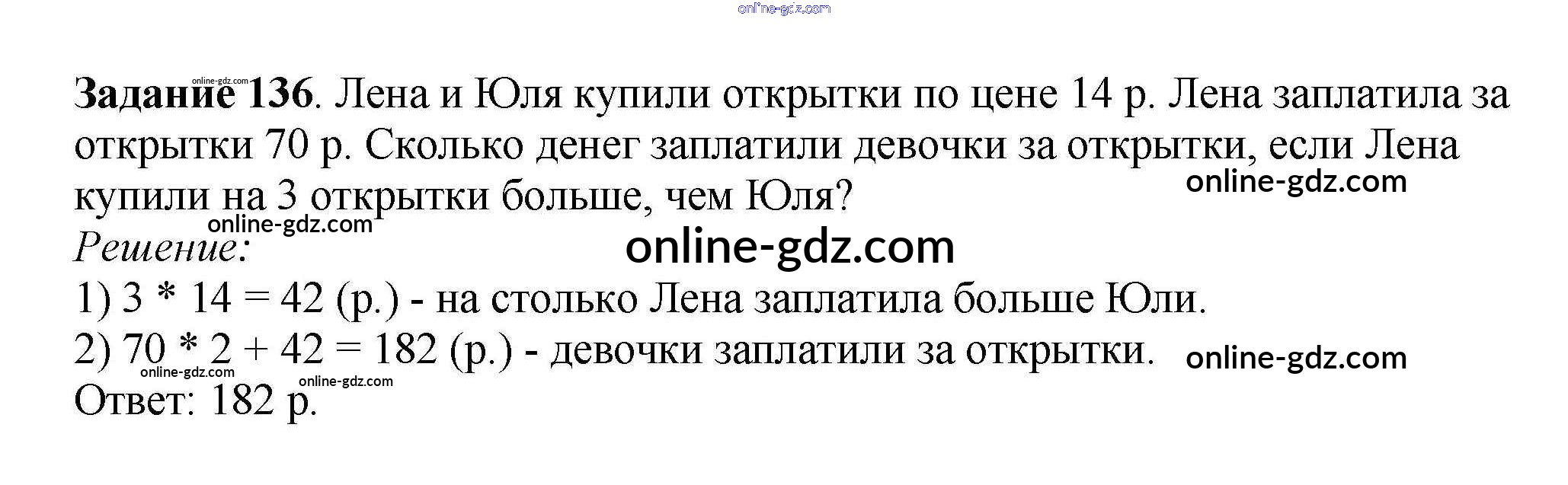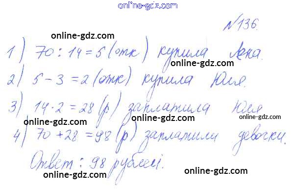 Готовые домашние задания по Математике за 3 класс Учебник Истомина Гармония 2014 - Часть 2 (упражнения) 136