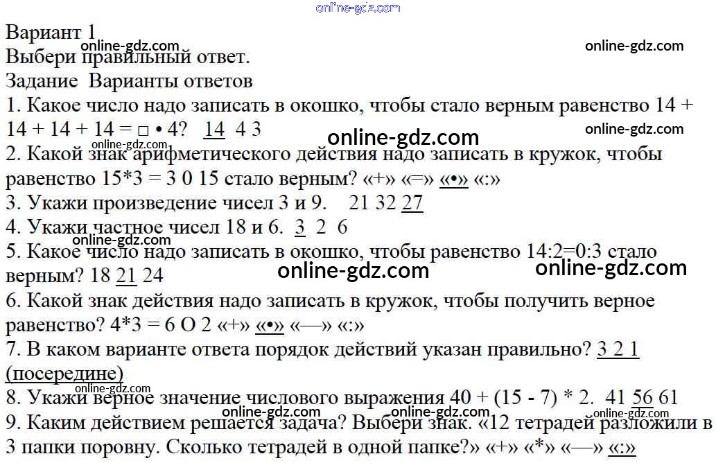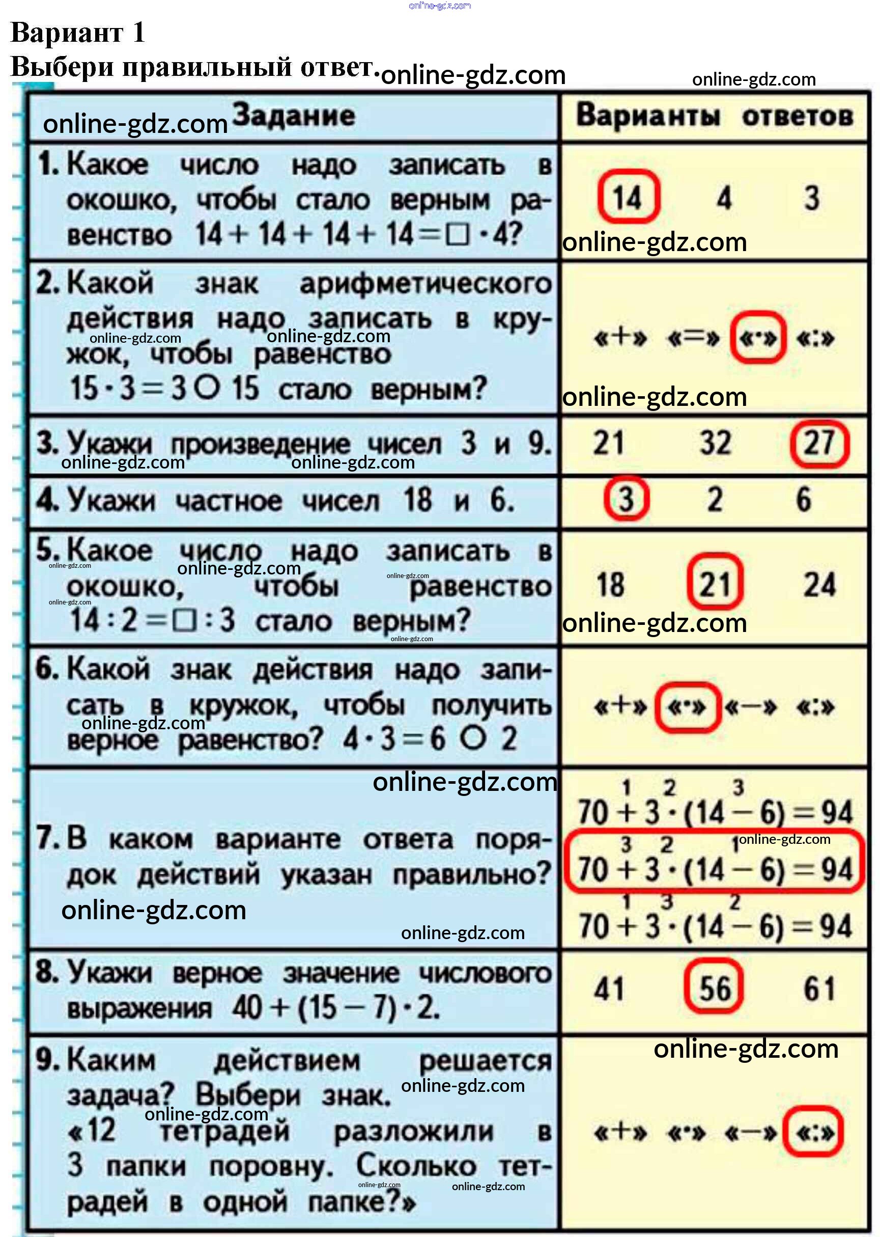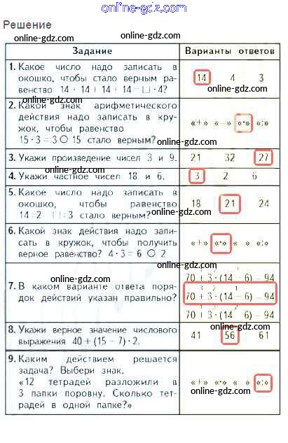 Готовые домашние задания по Математике за 3 класс Учебник Моро, Бантова Школа России 2015 - Страница 32-33 Часть 1 Вариант 1