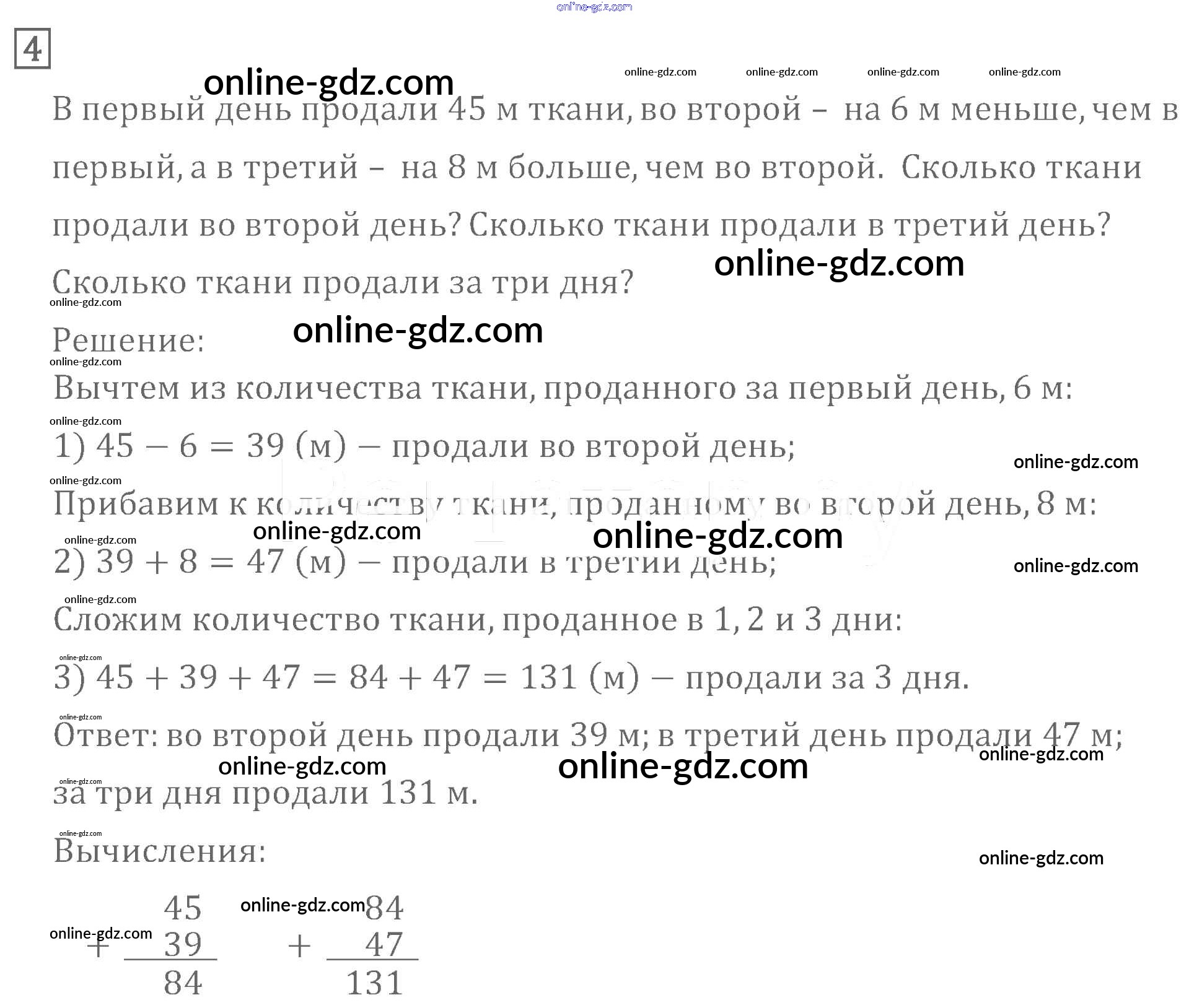 Готовые домашние задания по Математике за 3 класс Учебник Моро, Бантова Школа России 2015 - Страница 39 Часть 1 4
