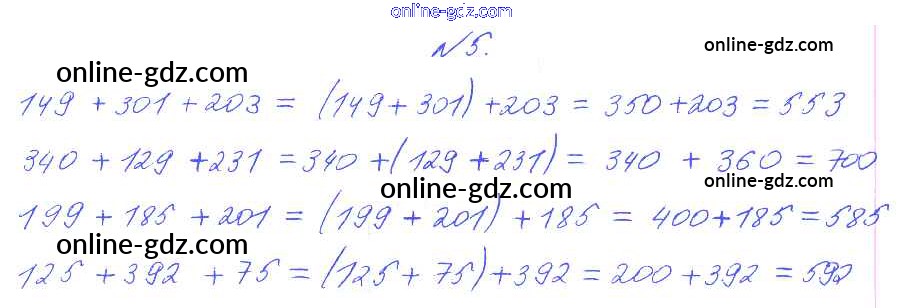 Готовые домашние задания по Математике за 3 класс Учебник Рудницкая, Юдачева Начальная школа XXI века 2016 - Сумма трёх и более слагаемых Часть 1 (упражнения) 5