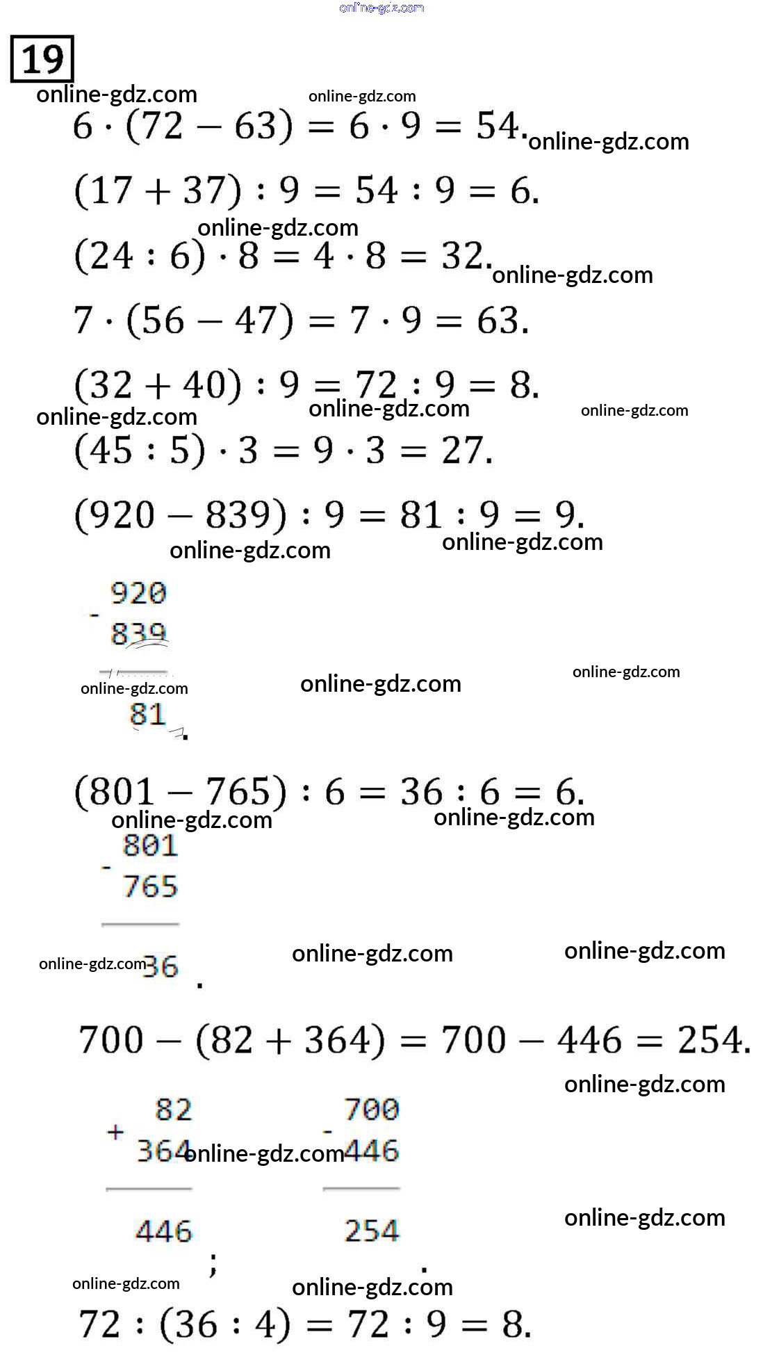 Готовые домашние задания по Математике за 3 класс Учебник Рудницкая, Юдачева Начальная школа XXI века 2016 - Порядок выполнения действий в выражениях без скобок Часть 1 (упражнения) 19