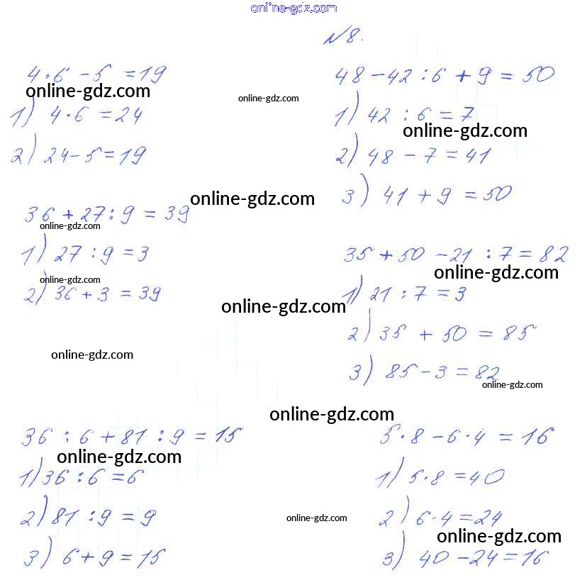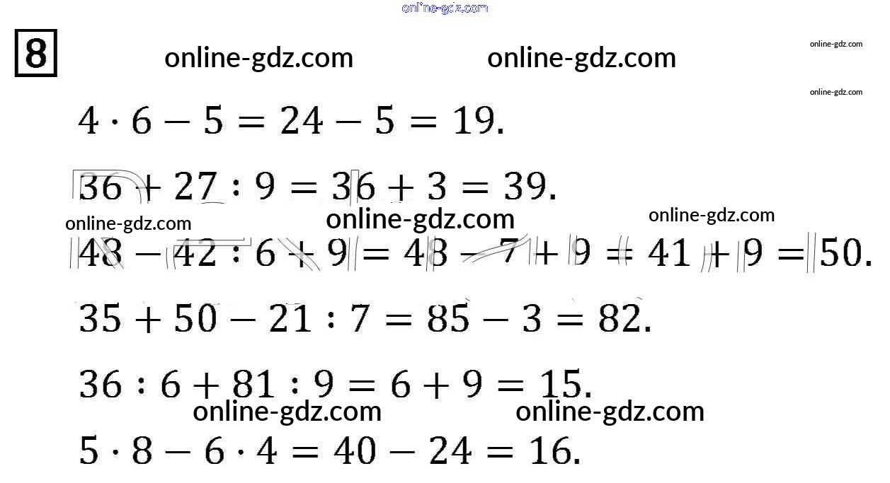 Готовые домашние задания по Математике за 3 класс Учебник Рудницкая, Юдачева Начальная школа XXI века 2016 - Порядок выполнения действий в выражениях без скобок Часть 1 (упражнения) 8