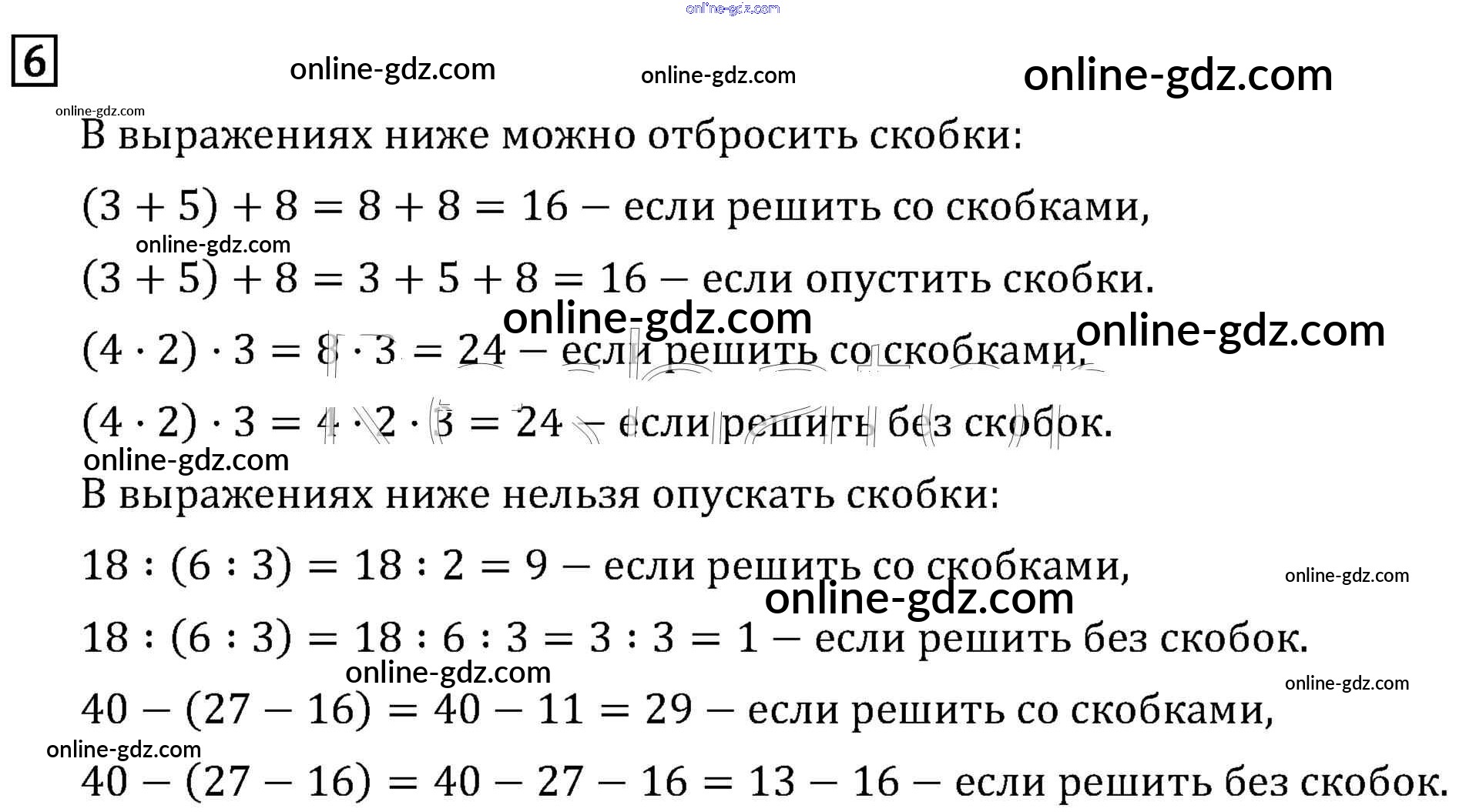 Готовые домашние задания по Математике за 3 класс Учебник Рудницкая, Юдачева Начальная школа XXI века 2016 - Порядок выполнения действий в выражениях со скобками Часть 1 (упражнения) 6