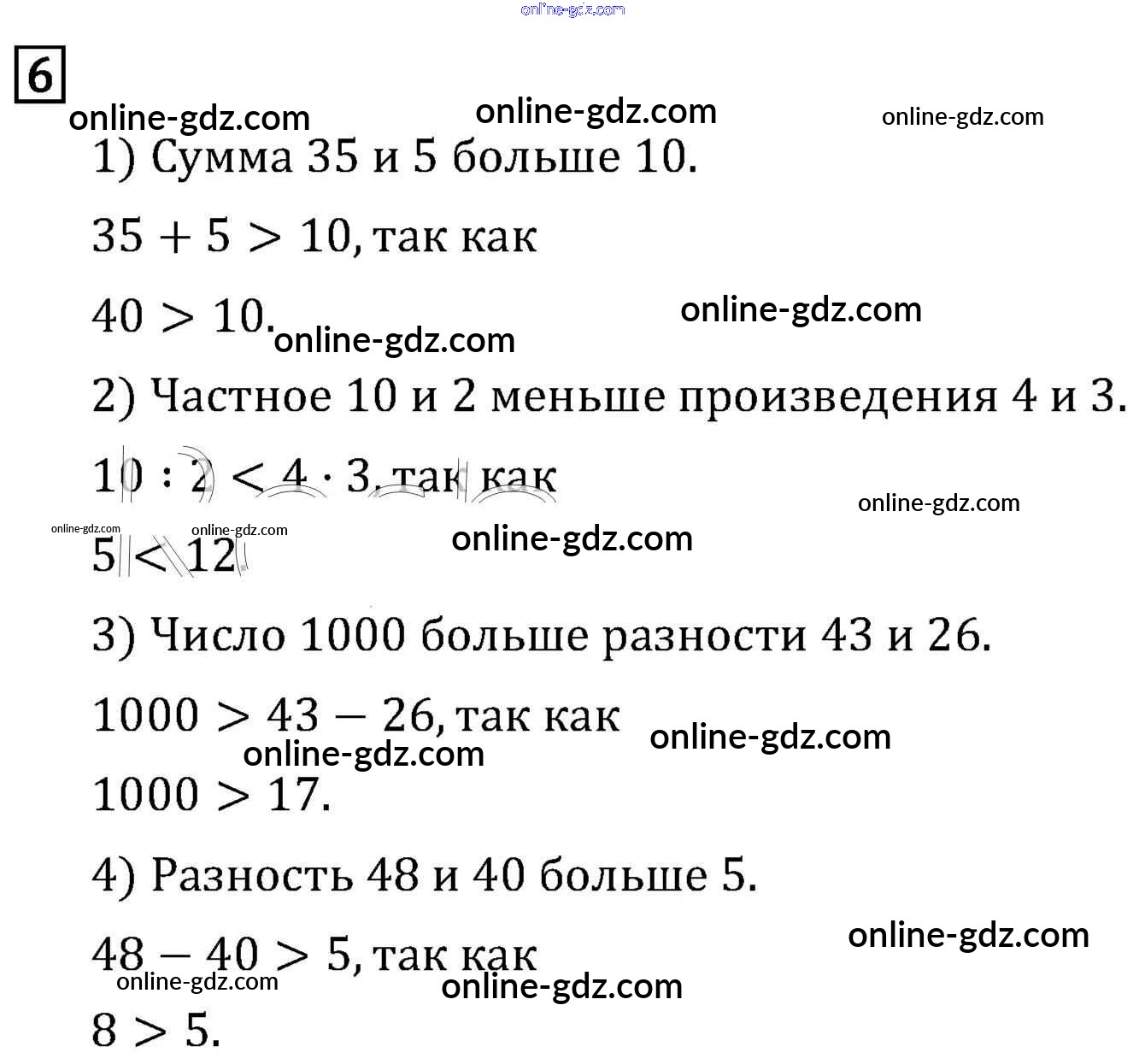 Готовые домашние задания по Математике за 3 класс Учебник Рудницкая, Юдачева Начальная школа XXI века 2016 - Сравнение чисел. Знаки > и < Часть 1 (упражнения) 6