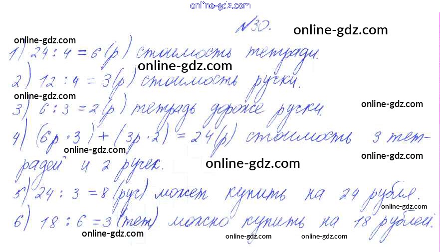 Готовые домашние задания по Математике за 3 класс Учебник Рудницкая, Юдачева Начальная школа XXI века 2016 - Масса. Килограмм. Грамм Часть 1 (упражнения) 30