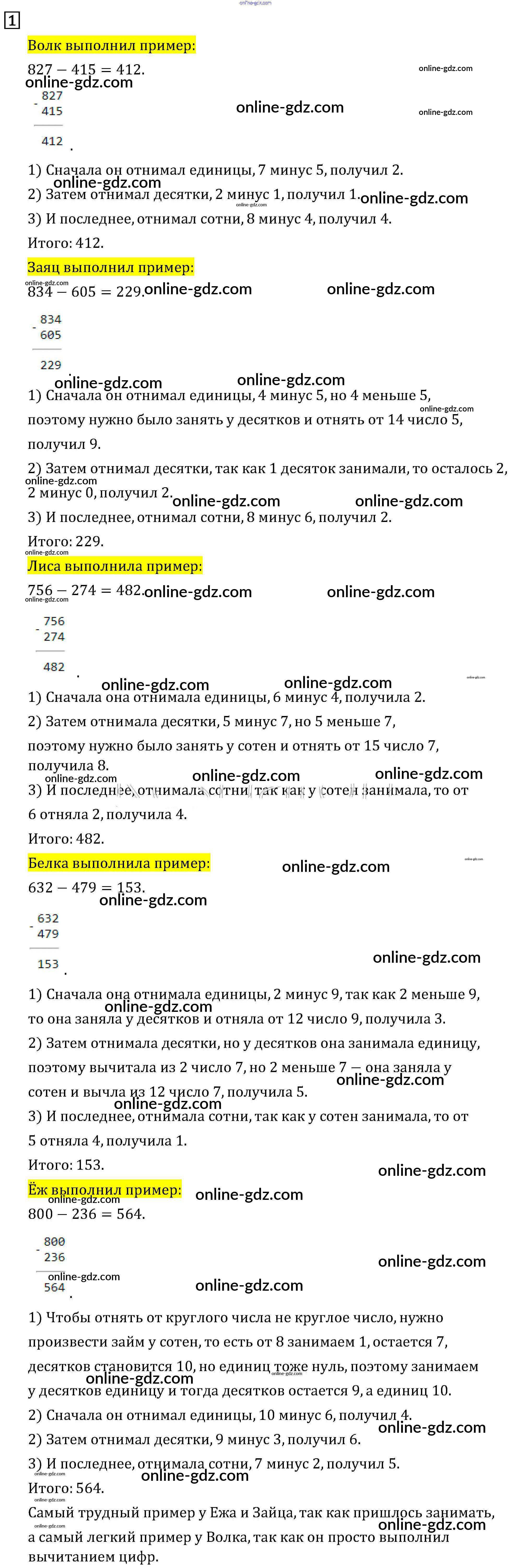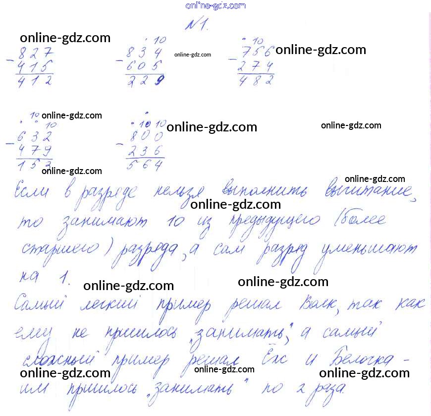 Готовые домашние задания по Математике за 3 класс Учебник Рудницкая, Юдачева Начальная школа XXI века 2016 - Вычитание Часть 1 (упражнения) 1