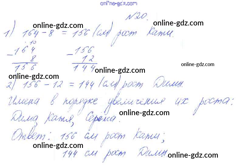 Готовые домашние задания по Математике за 3 класс Учебник Рудницкая, Юдачева Начальная школа XXI века 2016 - Вычитание Часть 1 (упражнения) 20
