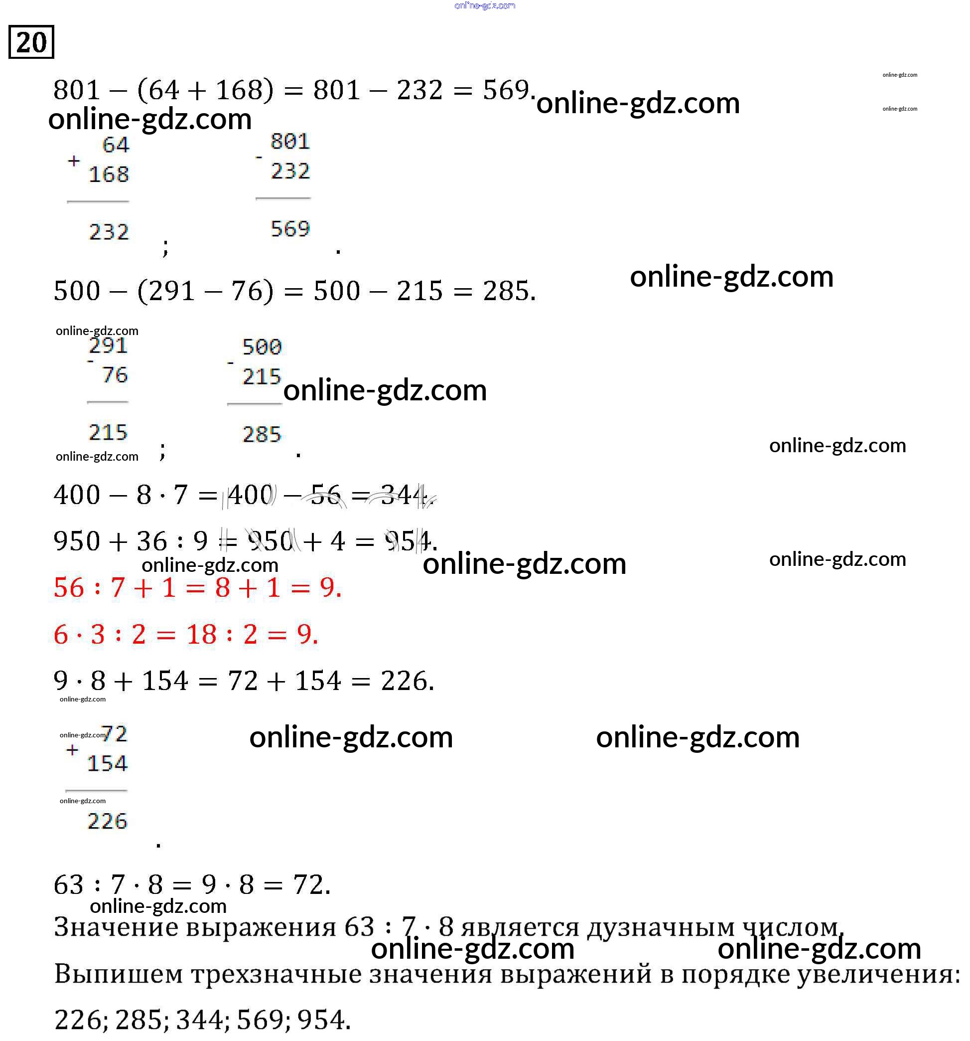 Готовые домашние задания по Математике за 3 класс Учебник Рудницкая, Юдачева Начальная школа XXI века 2016 - Числовые равенства и неравенства Часть 2 (упражнения) 20