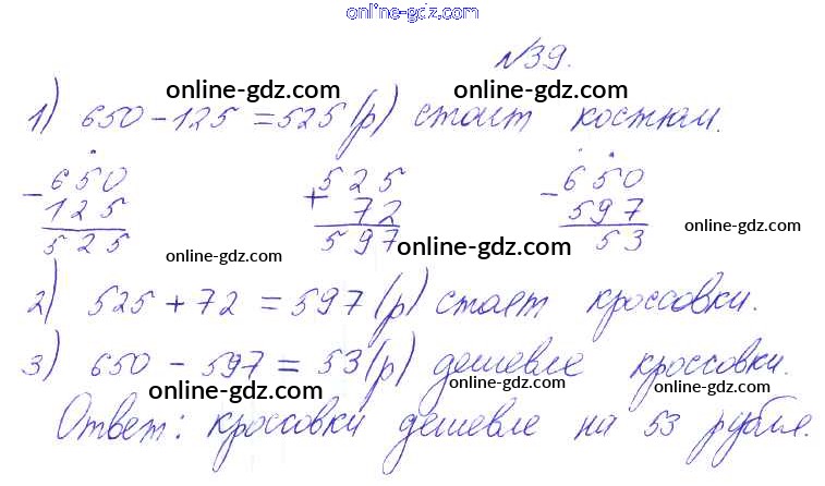 Готовые домашние задания по Математике за 3 класс Учебник Рудницкая, Юдачева Начальная школа XXI века 2016 - Нахождение однозначного частного Часть 2 (упражнения) 39