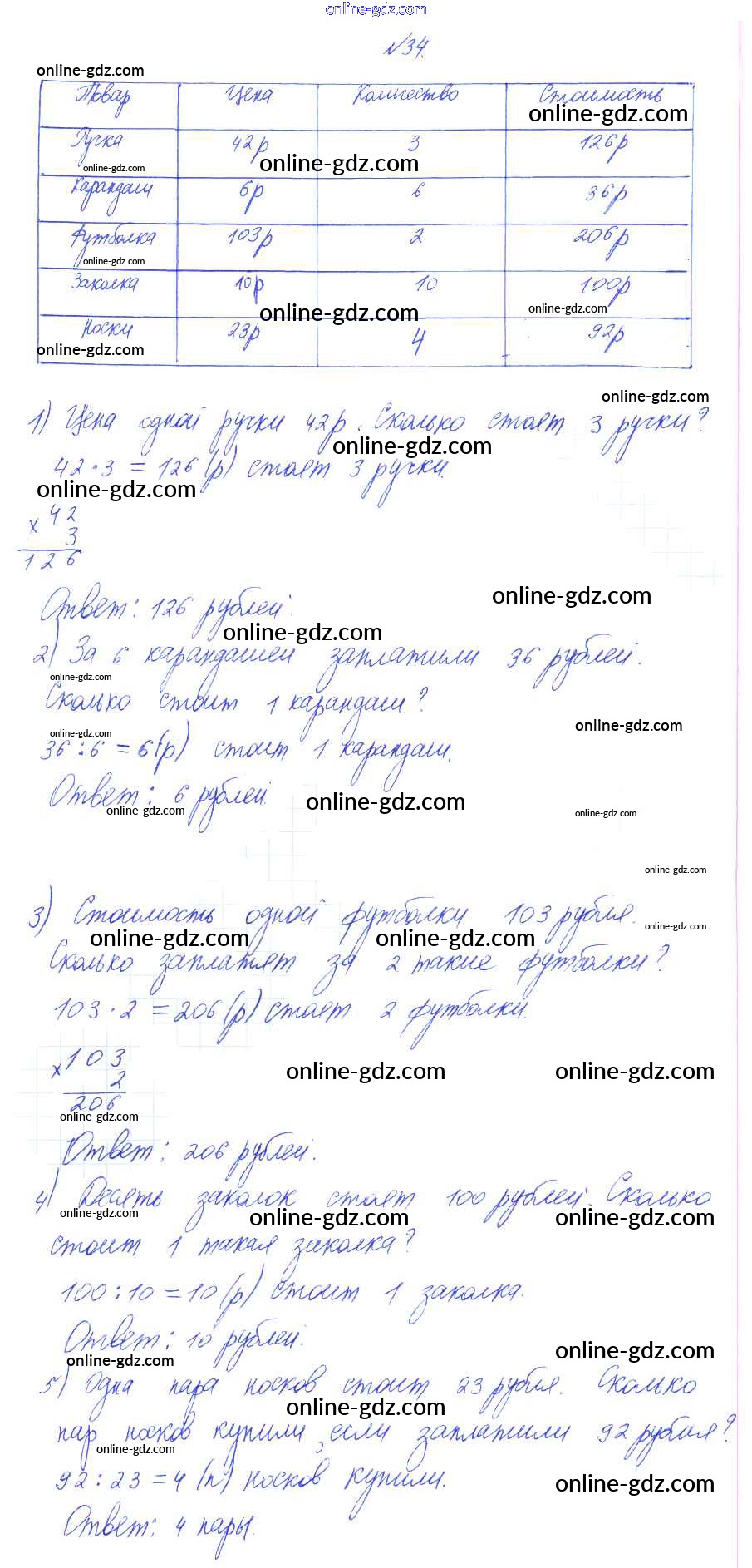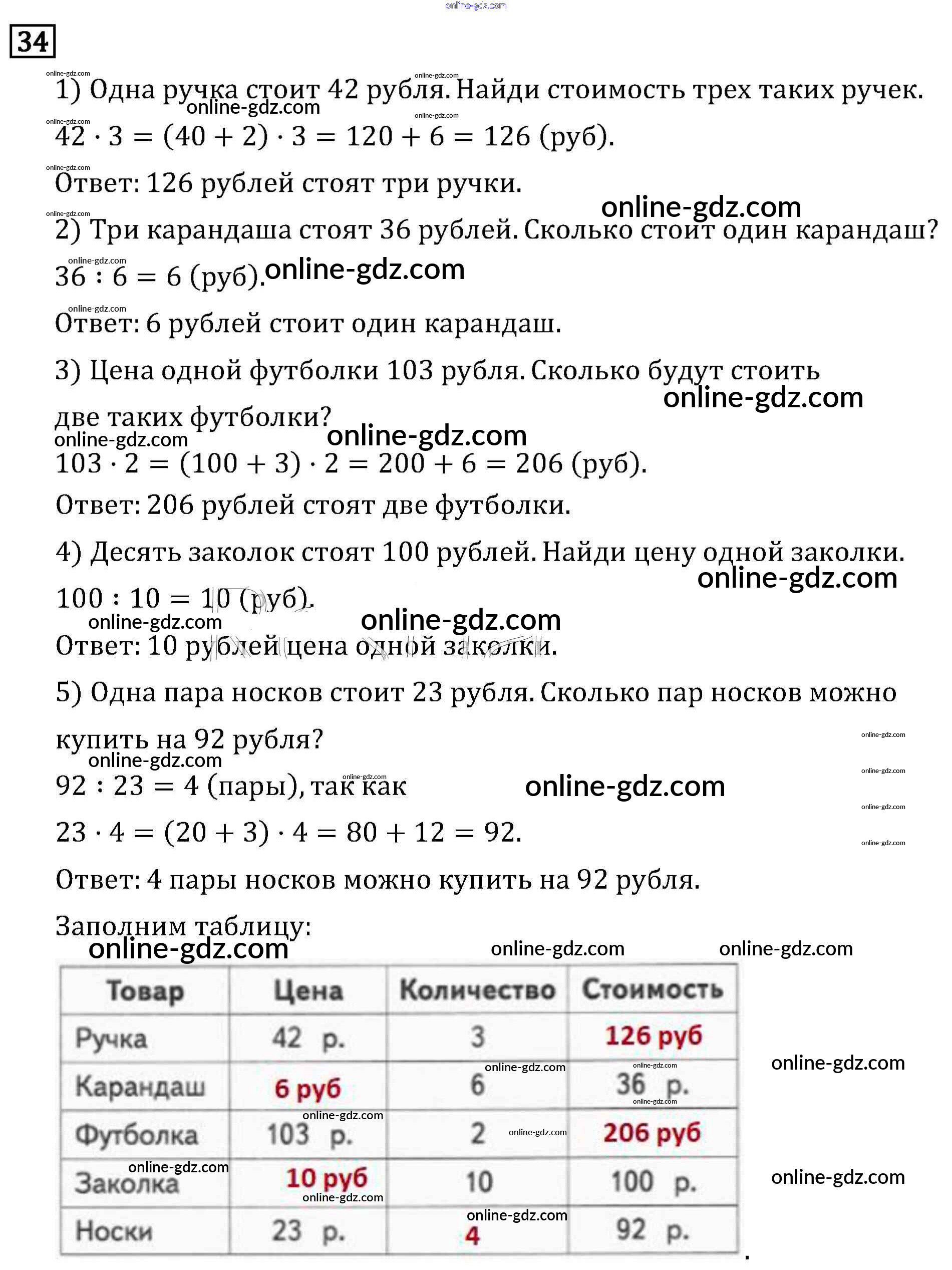 Готовые домашние задания по Математике за 3 класс Учебник Рудницкая, Юдачева Начальная школа XXI века 2016 - Деление с остатком Часть 2 (упражнения) 34