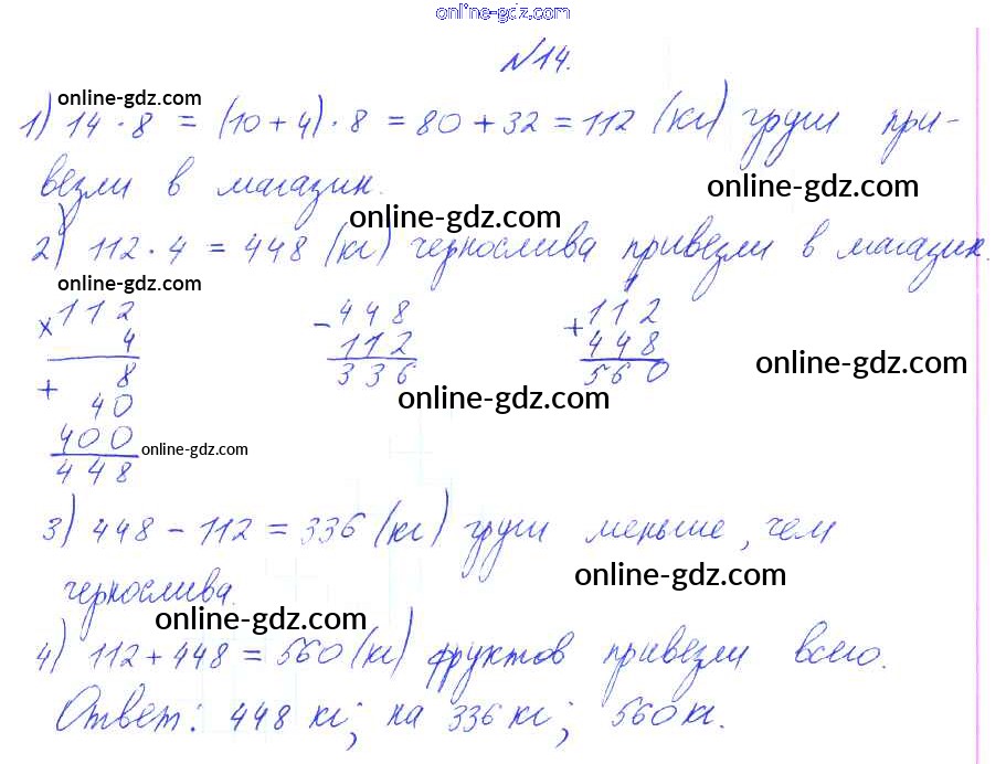 Готовые домашние задания по Математике за 3 класс Учебник Рудницкая, Юдачева Начальная школа XXI века 2016 - Умножение на однозначное число Часть 2 (упражнения) 14