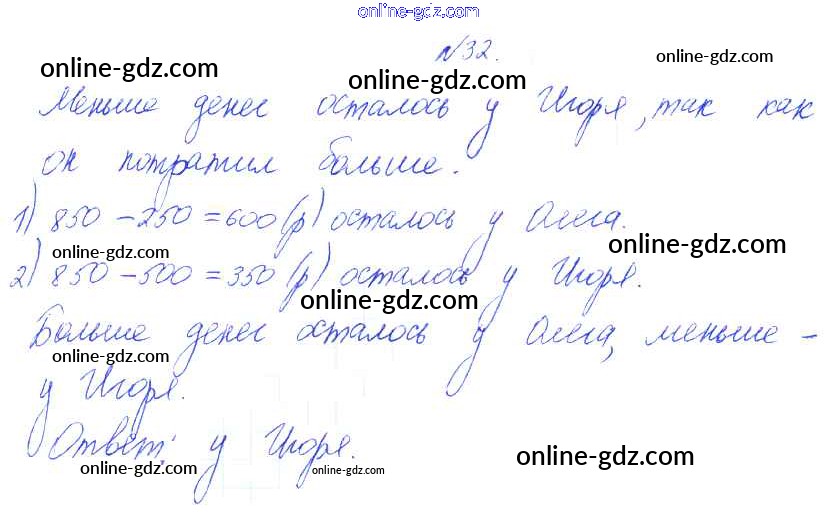Готовые домашние задания по Математике за 3 класс Учебник Рудницкая, Юдачева Начальная школа XXI века 2016 - Деление на 10 и на 100 Часть 2 (упражнения) 32