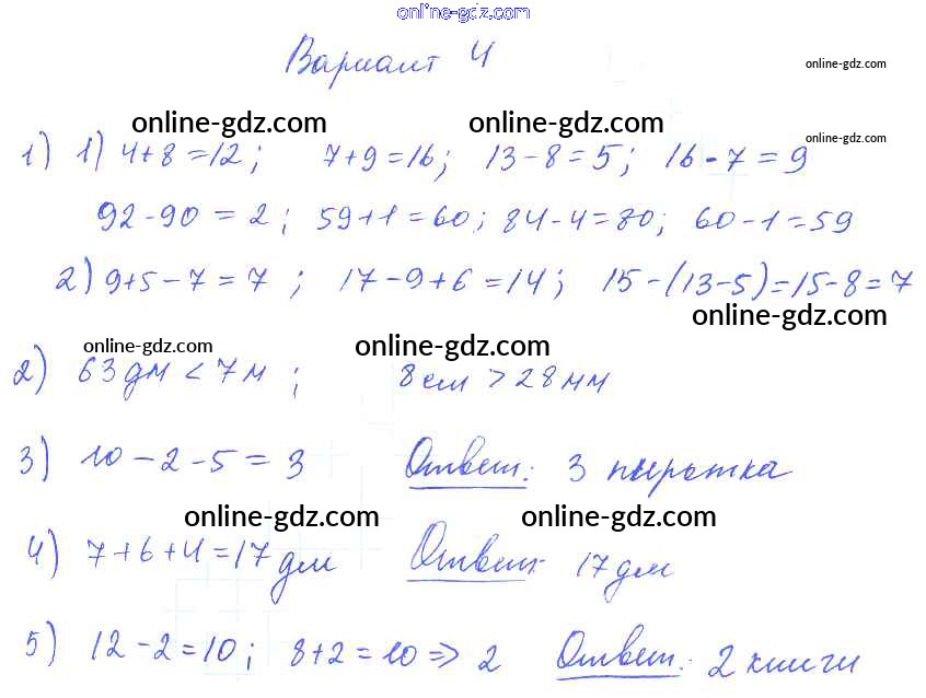 Готовые домашние задания по Математике за 2, 3, 4 класс Контрольные работы Волкова Школа России 2017 - Тема «Таблица сложения однозначных чисел и соответствующие случаи вычитания» стр. 17 2 Класс Вариант 4