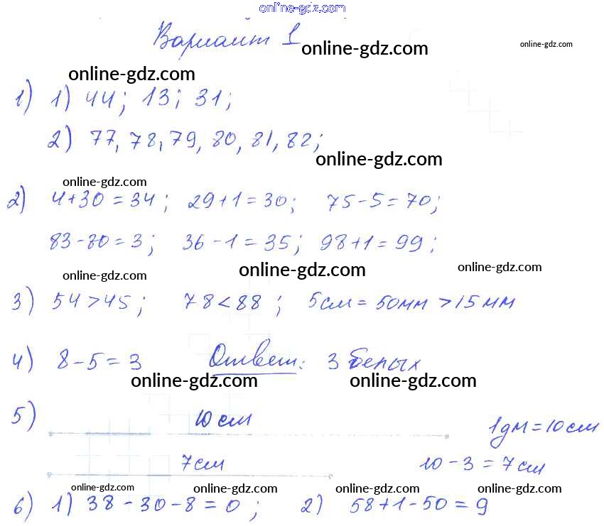 Готовые домашние задания по Математике за 2, 3, 4 класс Контрольные работы Волкова Школа России 2017 - Тема «Числа от 1 до100. Нумерация» стр. 18 2 Класс Вариант 1