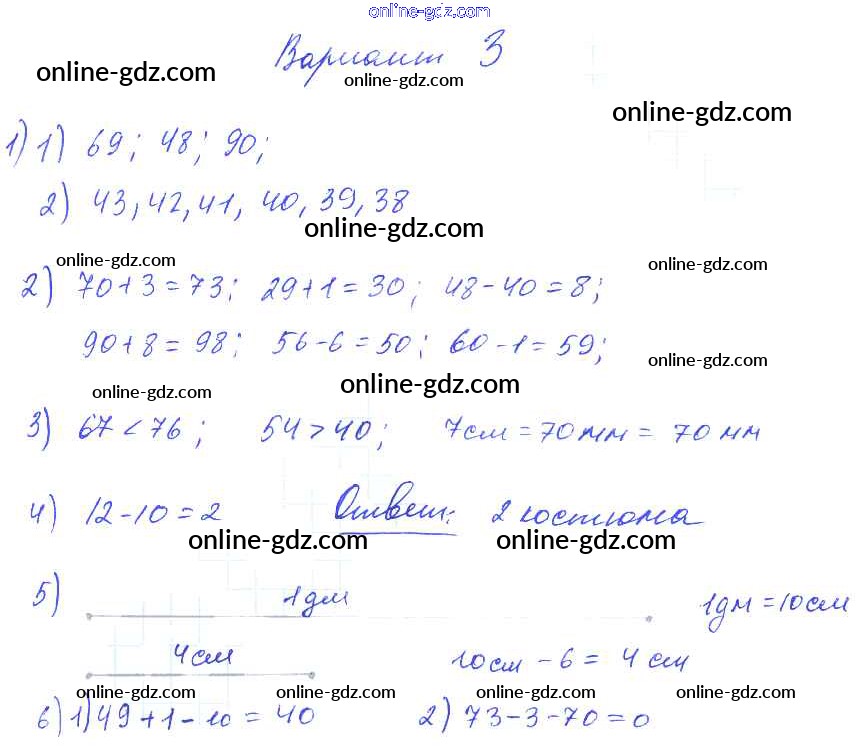 Готовые домашние задания по Математике за 2, 3, 4 класс Контрольные работы Волкова Школа России 2017 - Тема «Числа от 1 до100. Нумерация» стр. 18 2 Класс Вариант 3