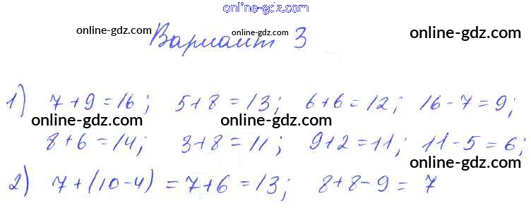 Готовые домашние задания по Математике за 2, 3, 4 класс Контрольные работы Волкова Школа России 2017 - Итоговая контрольная работа за 1 четверть 2 Класс Вариант 3