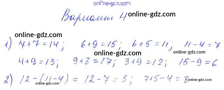 Готовые домашние задания по Математике за 2, 3, 4 класс Контрольные работы Волкова Школа России 2017 - Итоговая контрольная работа за 1 четверть 2 Класс Вариант 4