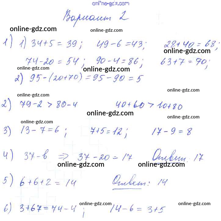 Готовые домашние задания по Математике за 2, 3, 4 класс Контрольные работы Волкова Школа России 2017 - Итоговая контрольная работа за 2 четверть 2 Класс Вариант 2