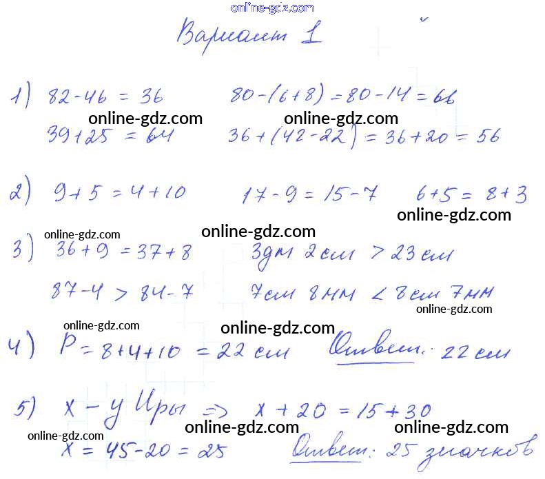 Готовые домашние задания по Математике за 2, 3, 4 класс Контрольные работы Волкова Школа России 2017 - Итоговая контрольная работа за 3 четверть. Контрольная работа 1 2 Класс Вариант 1