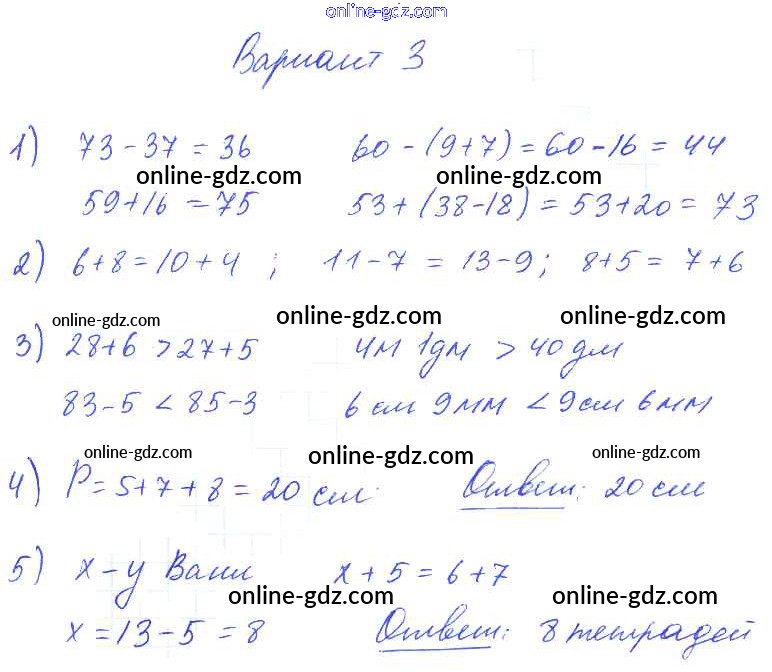 Готовые домашние задания по Математике за 2, 3, 4 класс Контрольные работы Волкова Школа России 2017 - Итоговая контрольная работа за 3 четверть. Контрольная работа 1 2 Класс Вариант 3