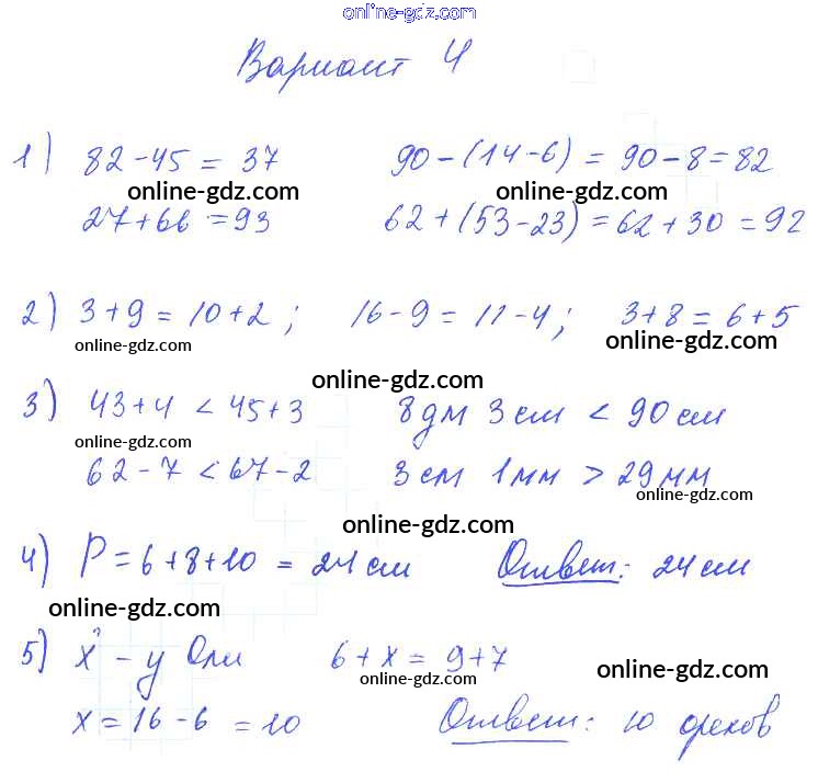 Готовые домашние задания по Математике за 2, 3, 4 класс Контрольные работы Волкова Школа России 2017 - Итоговая контрольная работа за 3 четверть. Контрольная работа 1 2 Класс Вариант 4